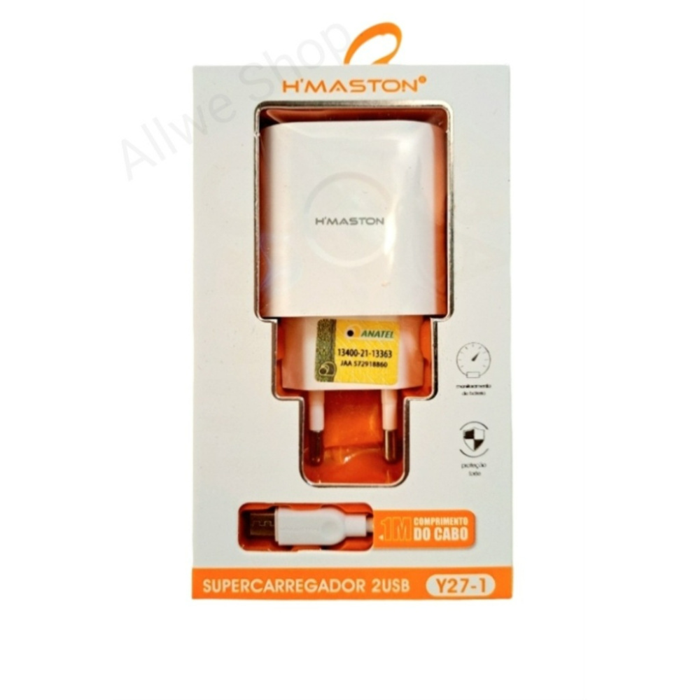 CARREGADOR RAPIDO V8 H'MASTON 2 PORTAS USB