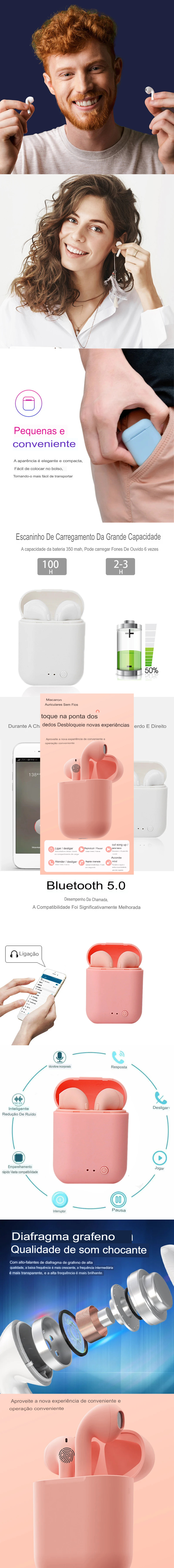 Fone bluetooth fone de ouvido carregador portátil Tws Bluetooth V5.0 Touch- I12 Bateria 3h Controle Touch Case Magnético