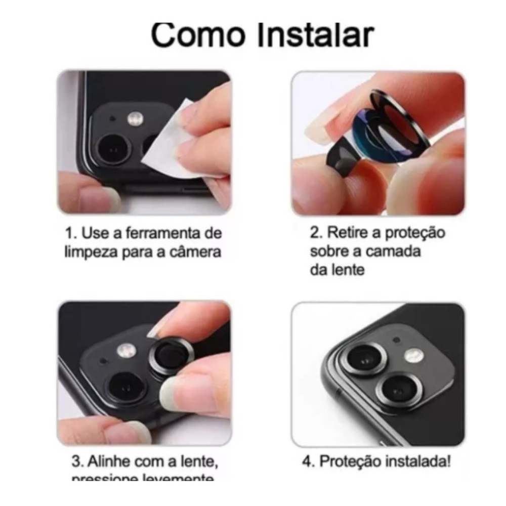 - Kit 2 Películas de lente para câmera para iPhone 11/12/13